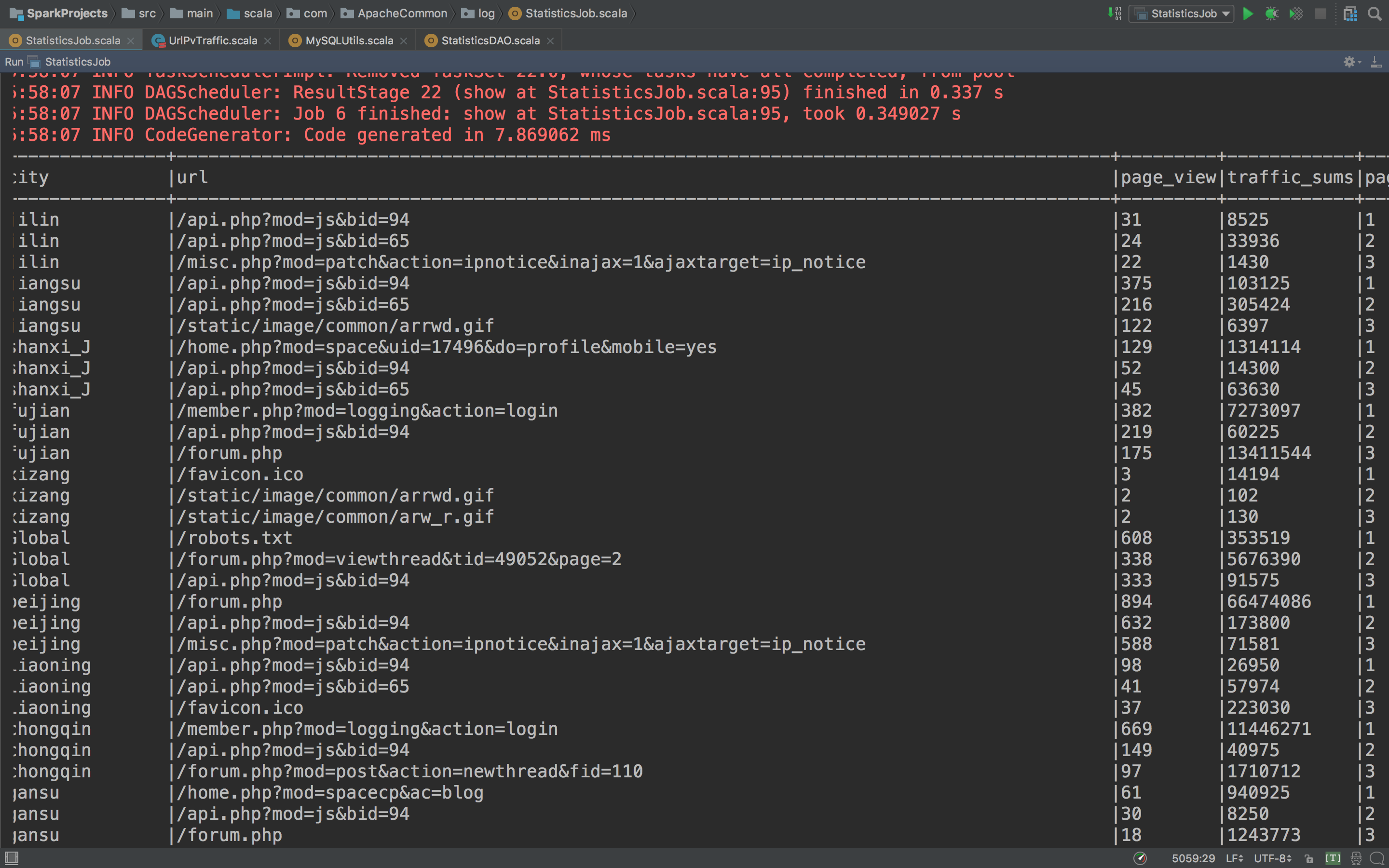 val url_city_statistics = accessdataframe.filter($"day" === day)