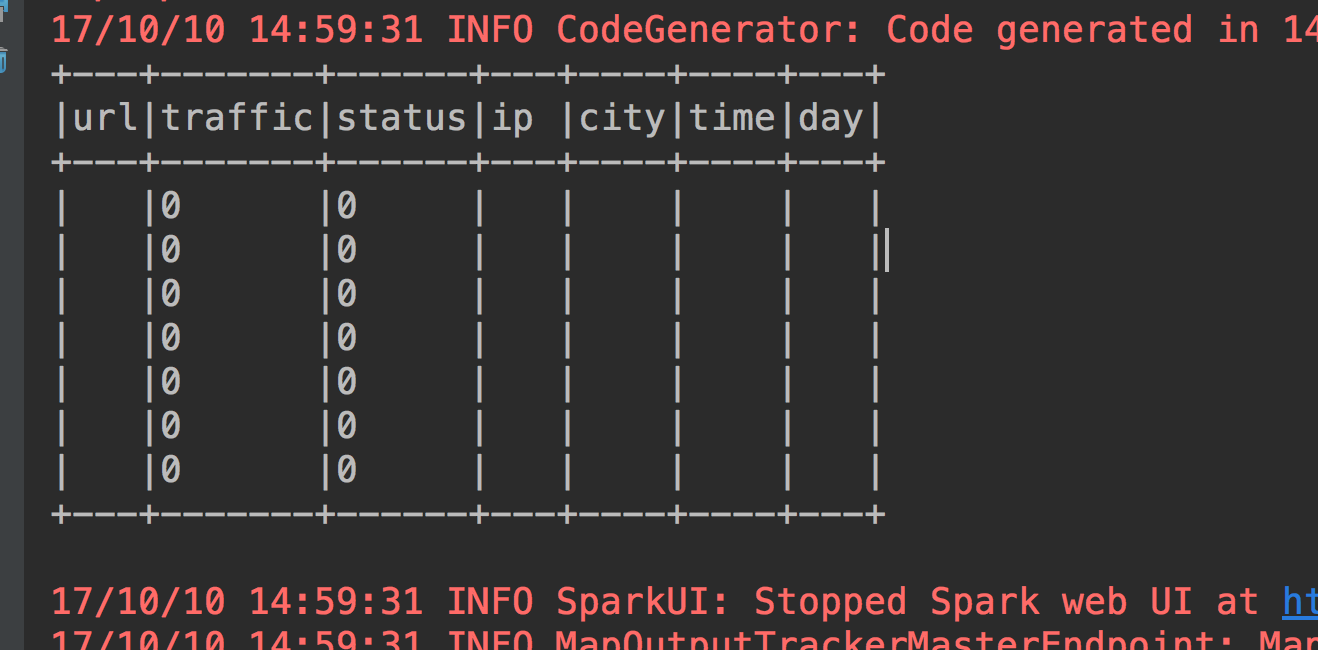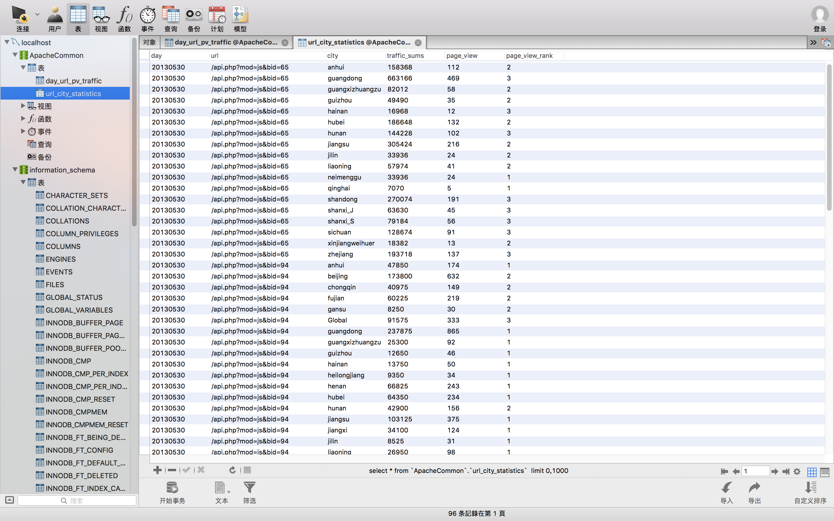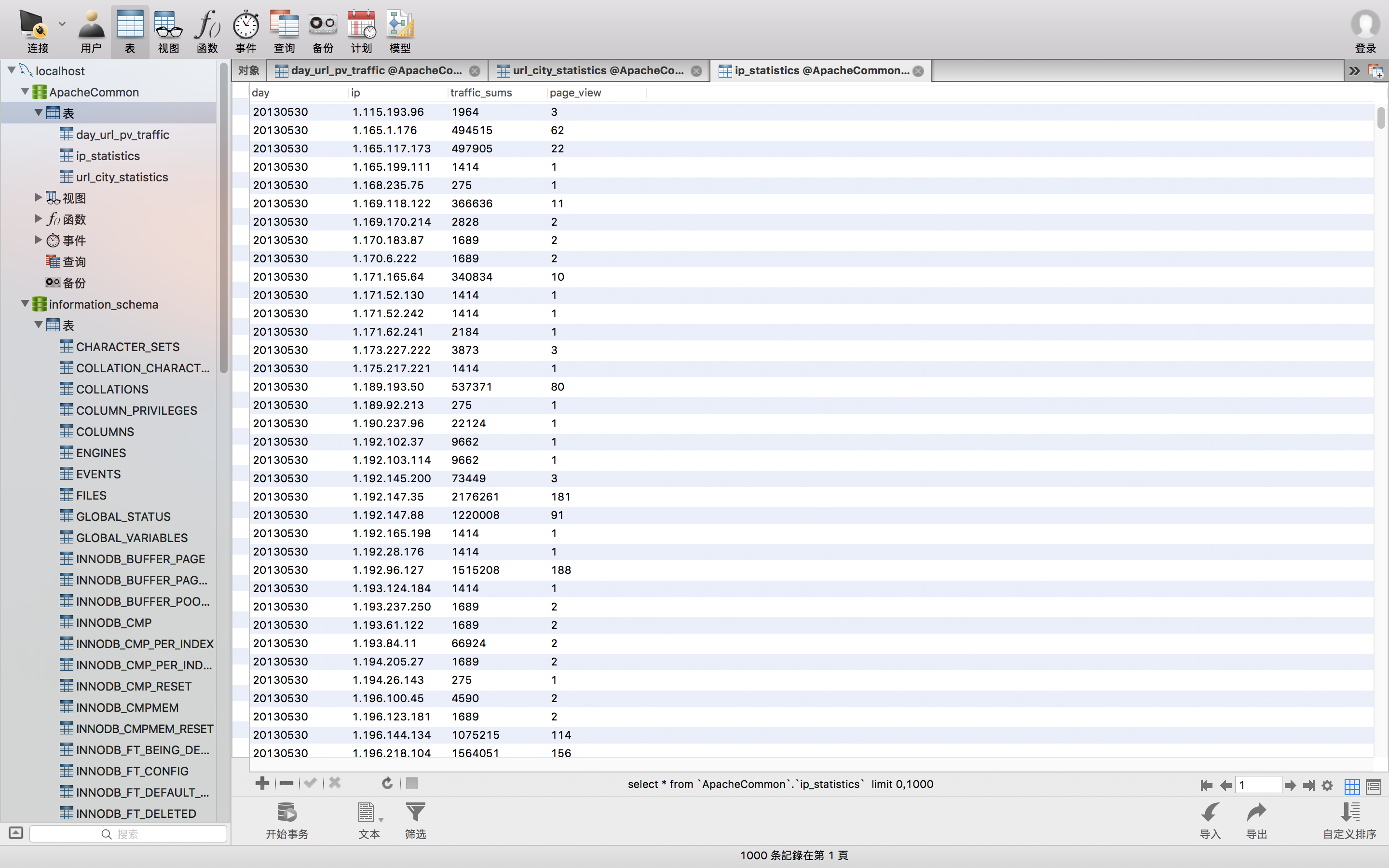 数据全进来了。到这里 按照地理区域统计访问量最高的url topN访问次数 也可以了。