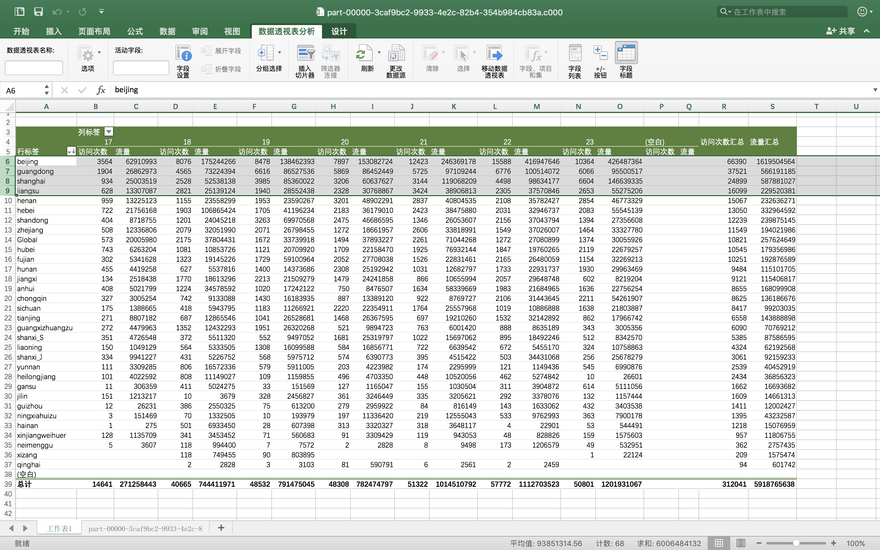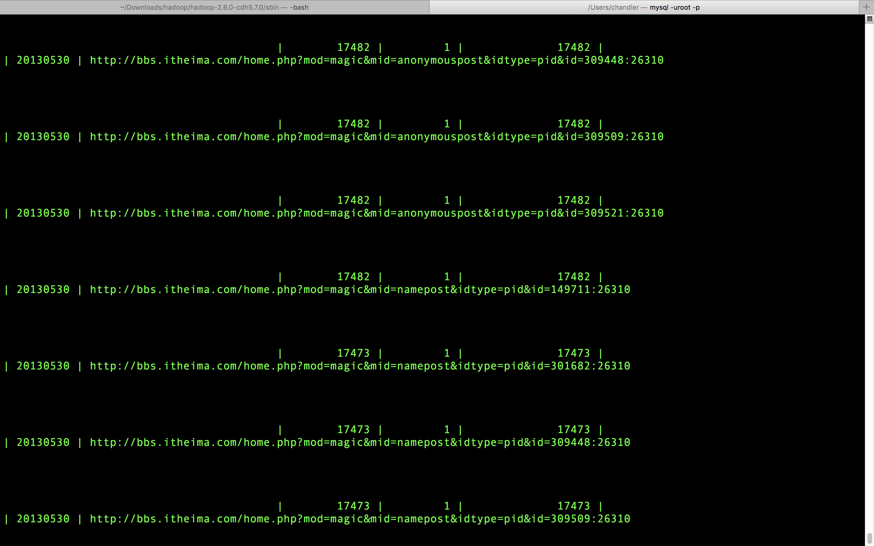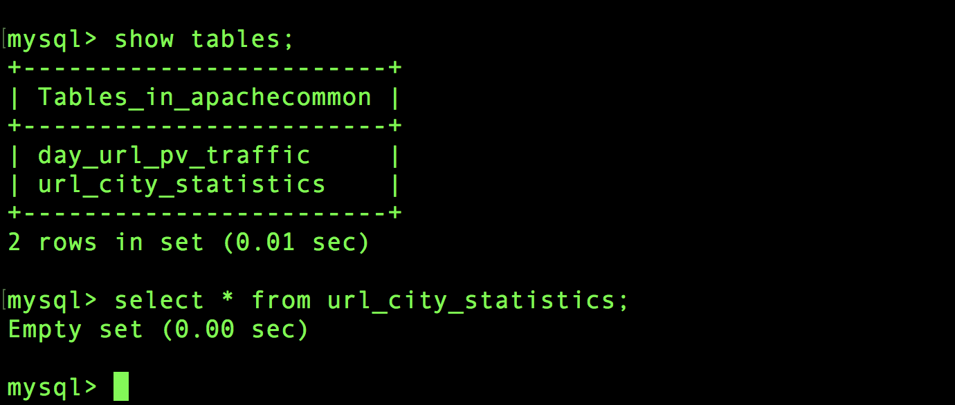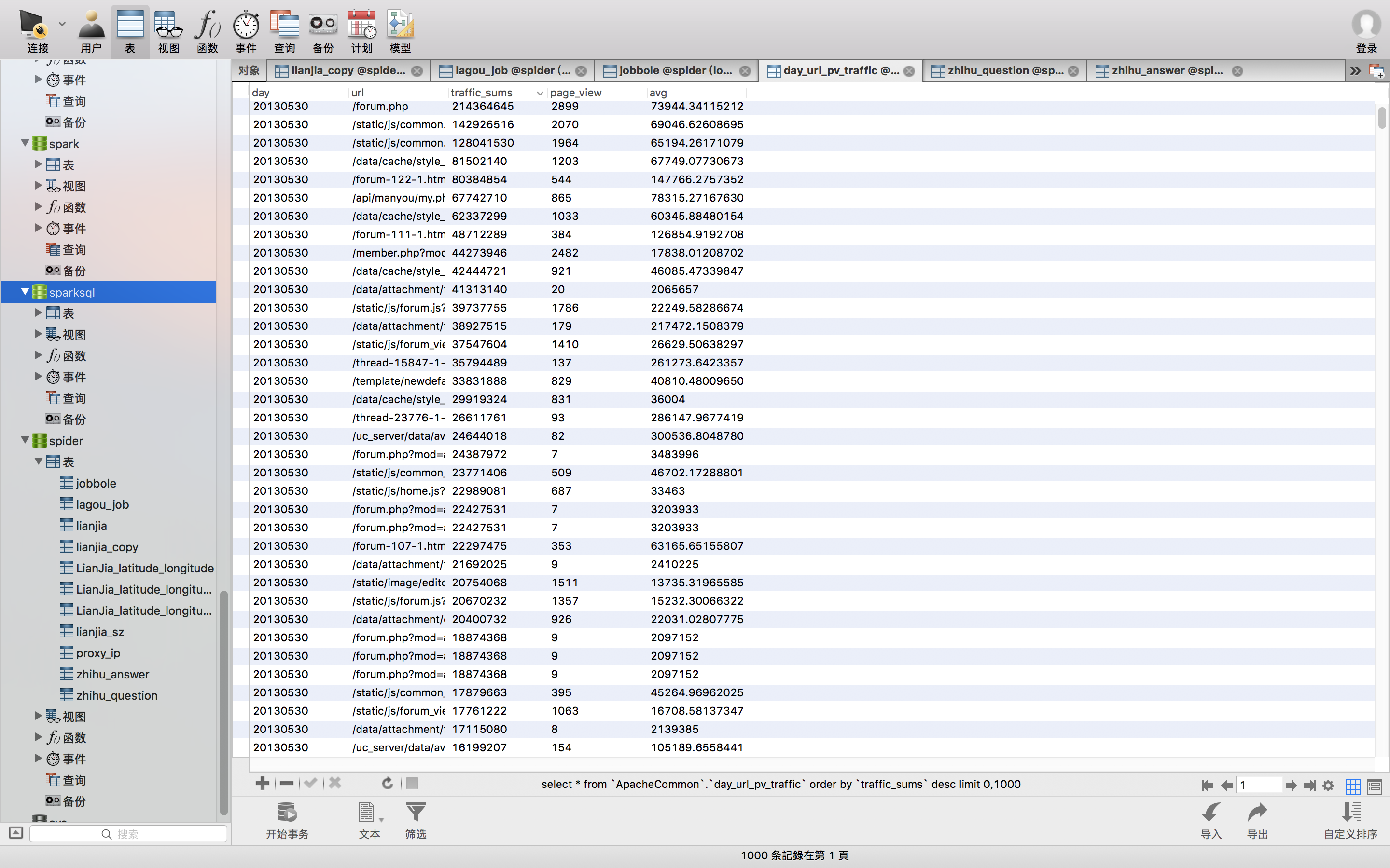 数据全进来了。到这里 按照地理区域统计访问量最高的url topN访问次数 也可以了。