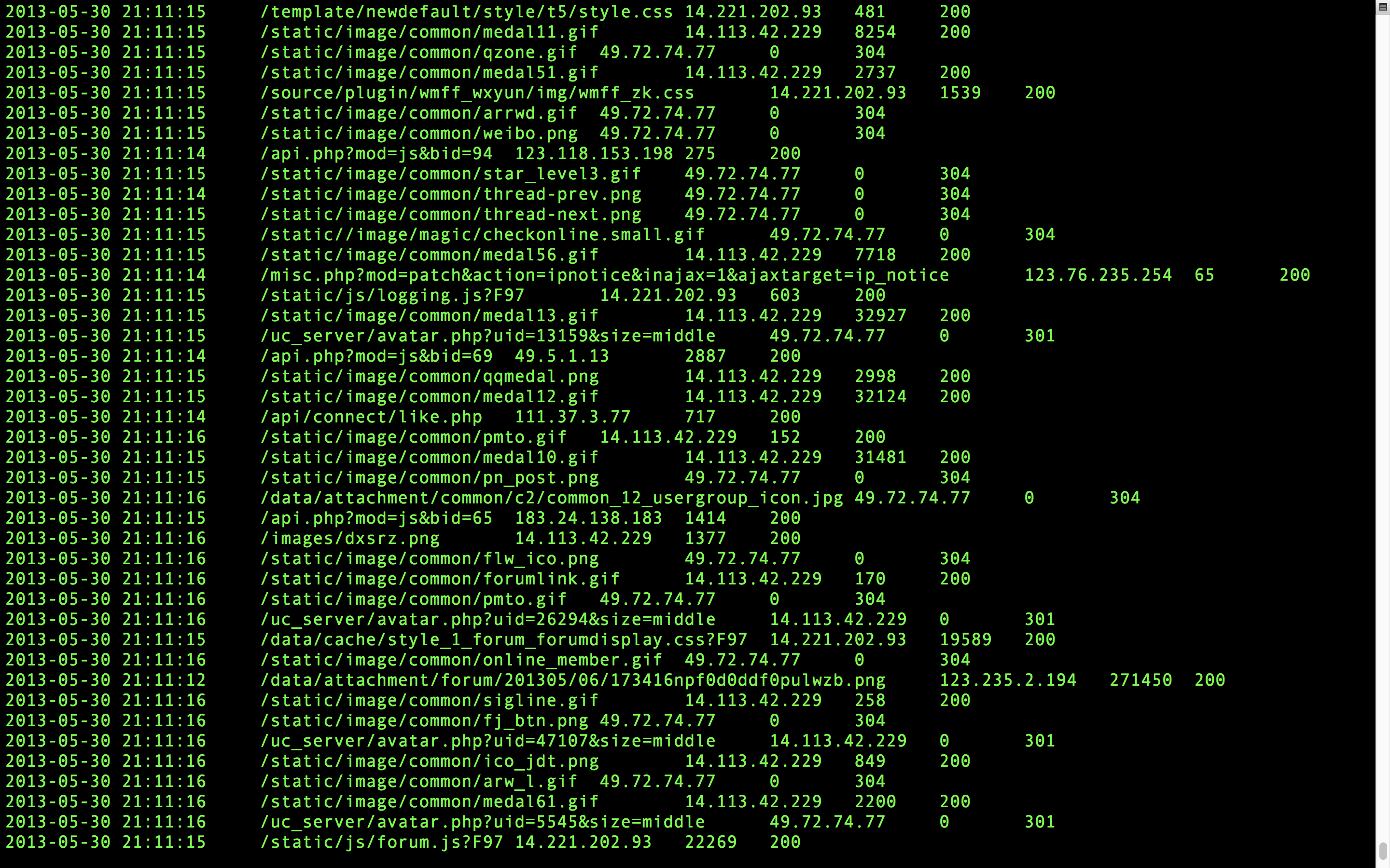 以上是一个一般的用户日志内容,这些内容其实都是我们可以配置的,你只要在Nginx上作出相应的配置。