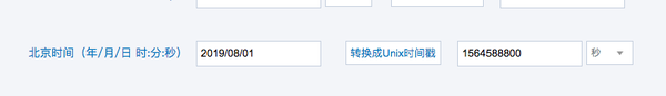 因此,2019年8月1日的时间戳,就是从1970年01月01日08时00分00秒到2019年8月1日00时00分的秒数,我们可以先用 工具 计算一下这个秒数: