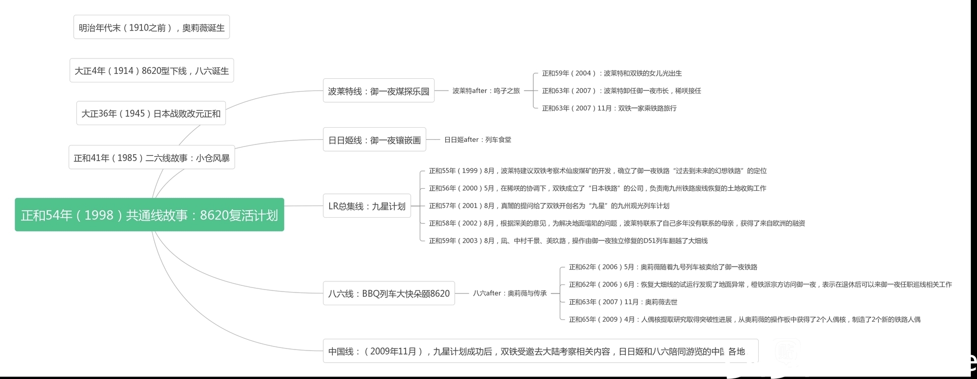 他在铁路商店召集众人,提出了“九星”列车的构想: 将三节客运车厢分成九个包间,每个包间按一个地区进行装饰,并附上当地有名的特产作为商品销售。 在加上之前幻想铁路的方案:让铁路路线成为各个城镇、车站的商品目录。对于车厢过长的问题,八六则指出可以选用两辆机车一同牵引,在需要避线的地方拆开即可。而两辆机车可以由多地区的不同机车担任,同时也实现了牵引机车由蒸汽机车到柴油机车再到电力机车的转化。