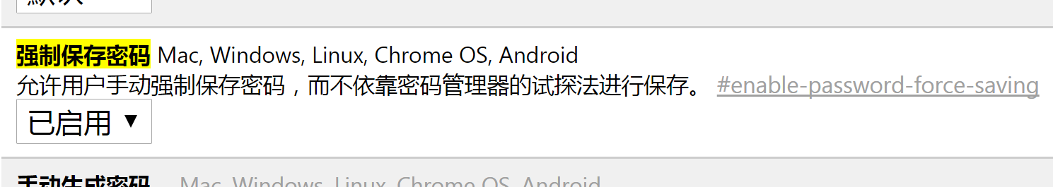 在 Chrome 地址栏输入「 chrome://flags/#enable-password-force-saving 」打开实验功能