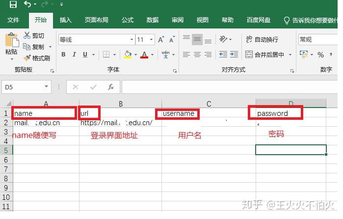 3.根据格式在csv文件中添加自己的密码