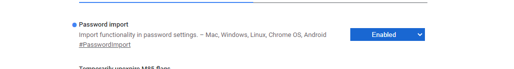 4.打开导入密码开关,在 Chrome 地址栏输入「chrome://flags」打开实验功能,选择password import,enable!