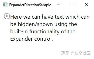 如果更改 ExpandDirection 属性的值,它将影响 Expander 控件的行为和外观。例如,如果您将值更改为 Right ,则箭头将放置在左侧并指向左/右而不是上/下。下面是一个例子: