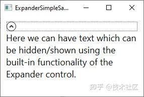 该 扩展 控制将为您提供的能力,以隐藏/显示一块内容。这通常是一段文本,但由于 WPF 的灵活性,它可以用于任何类型的混合内容,如文本、图像甚至其他 WPF 控件。为了了解我在说什么,这里有一个例子: