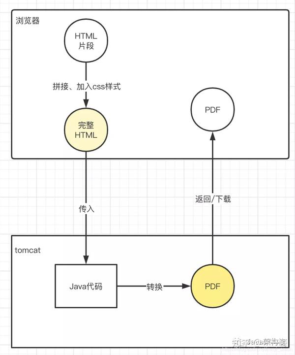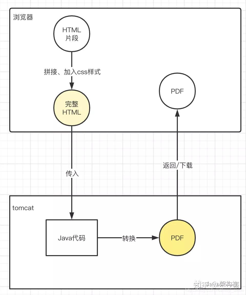 HTML转PDF用到的是jsoup和itextpdf框架。主要是在Java后端完成。流程图如下:
