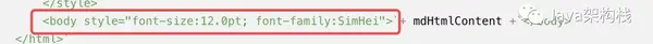 上述由Markdown转换成HTML的源码,大家会发现一个问题:没有html、head、body标签。这个需要手动拼接一下。为什么要手动拼接,此处重点解释,否则后面BUG成堆: