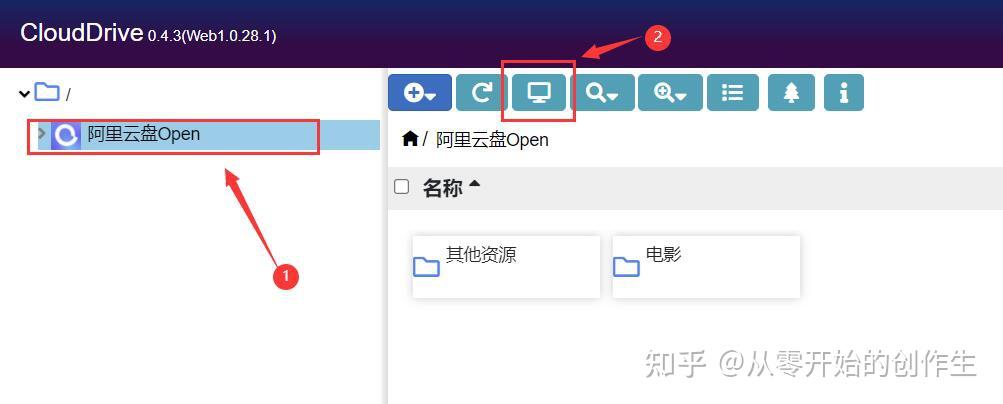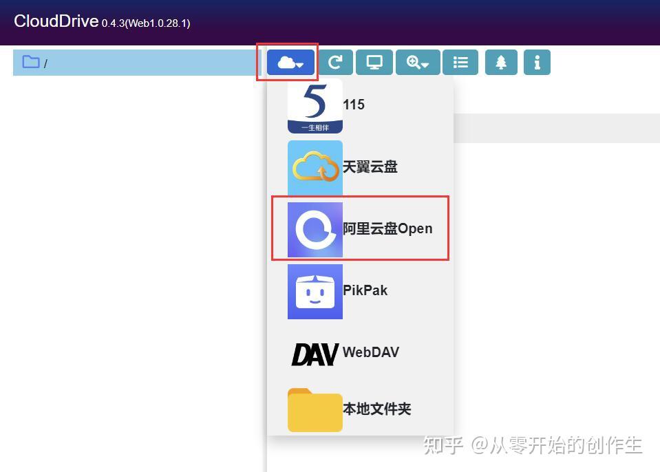 在clouddrive的后台,如图示将鼠标移到小云朵上,点击“阿里云盘Open”来添加阿里云盘账号,用阿里云盘手机app扫描出现的二维码登录上去就可以了。