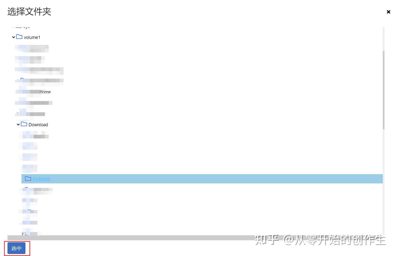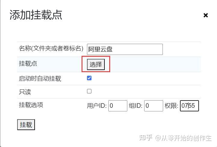 刷新一下网页就可以看到挂载的云盘了。如图示,在左侧目录树上选中刚刚挂载的云盘,然后再点击小电脑按钮,弹出的对话框中,先自定义下文件夹名称,勾选“启动时自动挂载”,再点击“选择”按钮,选择你群辉的本地目录,这里就是将网盘挂载到你本地的目录上,挂载好后在本地打开挂载的文件夹就可以看到网盘上的文件,一般群辉的存储空间在volume目录下,仔细找找就能看到,确认好挂载目录后,点击“选中”即可,回到对话框,点击“挂载”就挂载好网盘了。