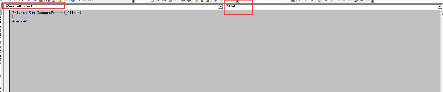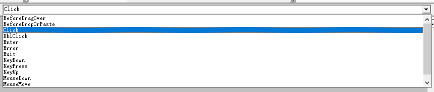 如果你选中了其它事件,则 VBE 会自动给你生成这个事件的函数签名,它是根据按钮的名称和事件名称来命名的,所以这个函数名字应该是不能改动的(我没有试过改)