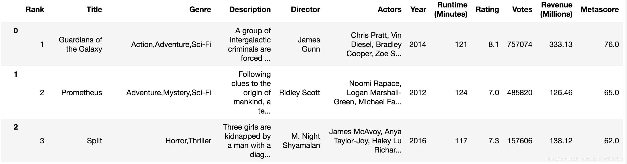 现在我们有一组从2006年到2016年1000部最流行的电影数据