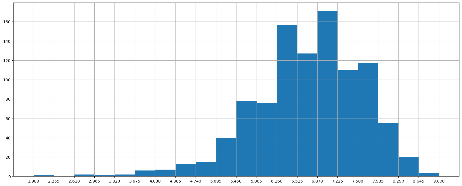 对于这一组电影数据,如果我们想Rating的分布情况,应该如何呈现数据?