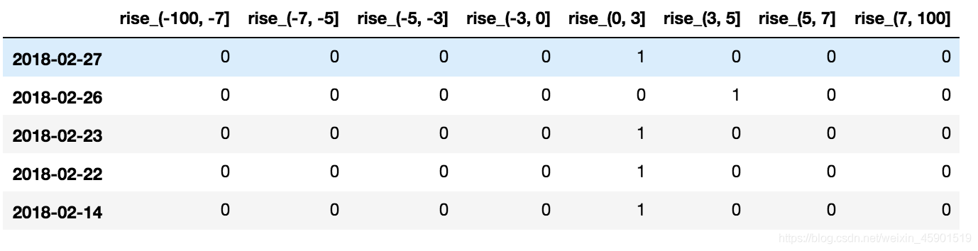 - 2、遍历每一部电影,temp_df中把分类出现的列的值置为1