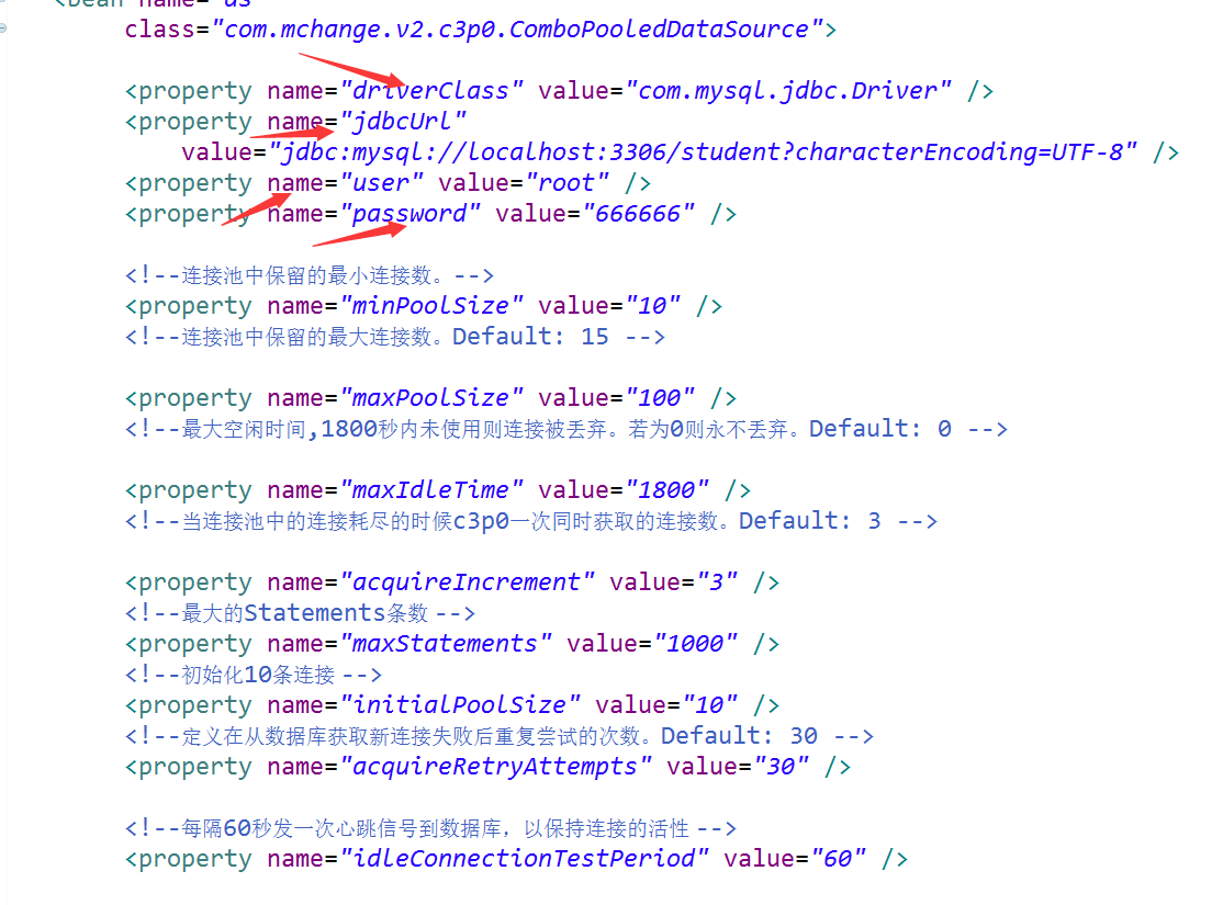 调整applicationContext.xml以使得其支持c3p0数据库连接池