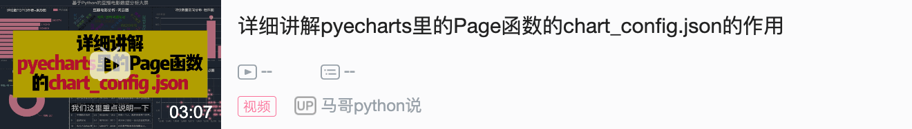 不然保存json文件时,pyecharts会给图表生成随机的chart_id,后面巧用json文件时就会很麻烦,需要手动替换chart_id了!