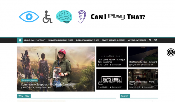 除了 Dager System、Ablegamer 这几个一直致力于推广无障碍游戏体验的组织外,还有一些网站会发布关于障碍玩家的文章。「Can I Play That?」便是一个致力于推广这一理念的网站,他们为障碍玩家发布关于自己游戏体验和评测的文章提供了一个平台。
